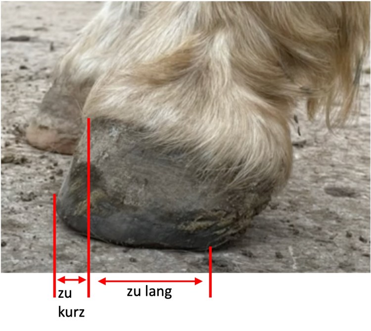 Die falsche Lastverteilung wird durch folgende Merkmale am Huf sichtbar: